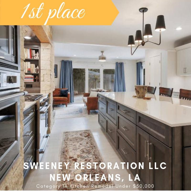 Sweeney Restoration has received multiple Louisiana Remodeling Excellence Awards, including first-place honors for whole-house remodels and kitchen renovations. These recognitions reflect our commitment to high standards in construction, design execution, and structural integrity.